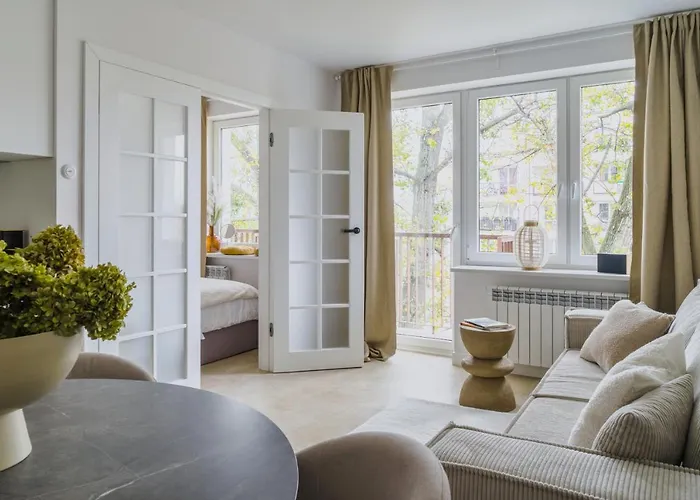 Das Apartment ist in einer Entfernung von etwa 10 Fahrminuten vom Altstädtischen Markt sowie in einer Entfernung von etwa 15 Fahrminuten von dem Łazienki-Palast gelegen. Diese 40 m² großen Apartments befindet sich außerdem 500 Meter von der Skulptur "Tänzerin" entfernt.